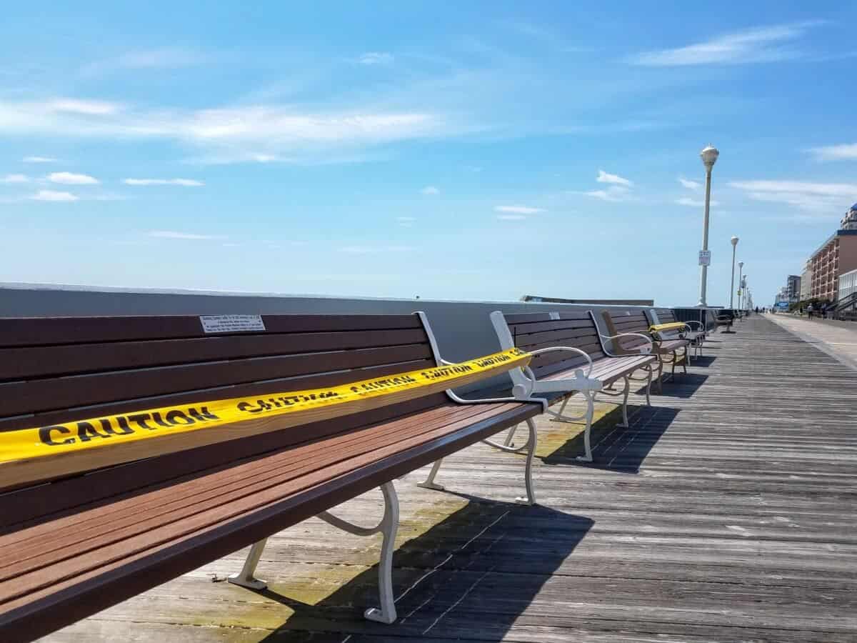 A sign of the times, both in Ocean City, and all around the world. We were no longer allowed to sit and chat with strangers, and there were no people to watch on the Boardwalk
