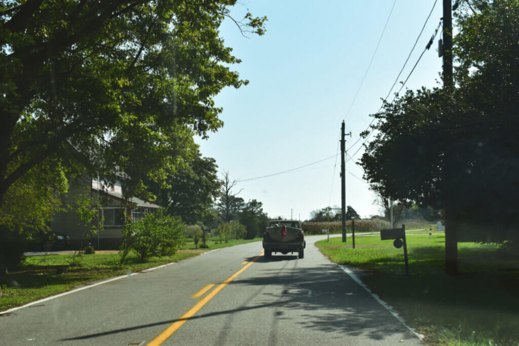 We drove down Snow Hill Road to get to George Island Landing, first passing through another small town, Girdletree, then through Stockton. We passed its churches and cemeteries, its volunteer fire department, empty old shop buildings that might have once made up a “downtown” or at least a street corners-worth of stores, and houses, some clearly occupied and decorated for the fall and others in any stage of abandonment. There are enough cemeteries in Stockton and Girdletree to imply that there are more people buried underneath the two towns than there are people currently living above them.