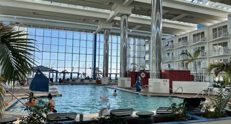 “The Princess Royale Oceanfront Resort is the largest oceanfront resort in Maryland, encompassing one full ocean front block tucked away from the hustle and bustle of downtown Ocean City. We have breathtaking ocean lookouts, green lawns, a 4-story Atrium with an Olympic size indoor pool with quick access to the beach, making it a little piece of paradise.