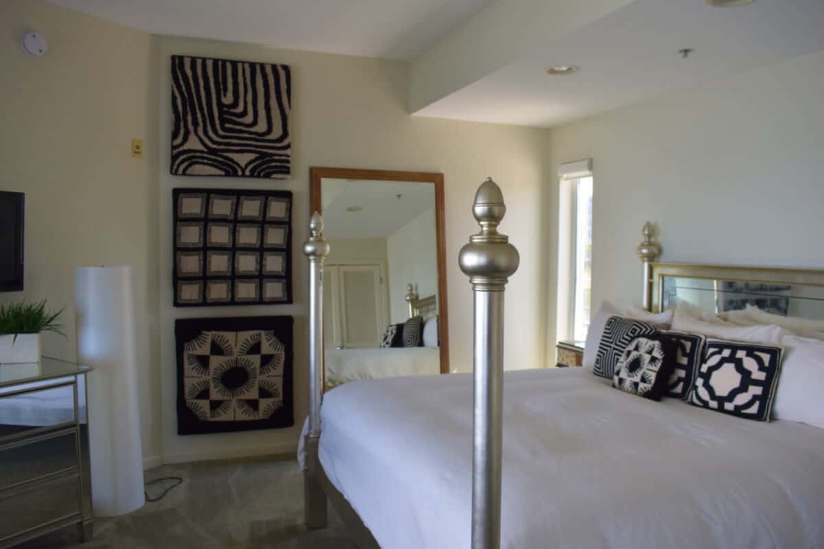 Looking at The Edge hotel and glimpsing at its pool from the south entrance.The breezeway provides a cool and colorful spot to lounge in the summer, where guests can still take in the sights, sounds and smells of the bay.The pool is available to guests of both The Edge and the Lighthouse Club hotels. They can swim, lounge and enjoy frozen drinks and lunch served by the water.The Left Bank: A spacious handicap-accessible room, the Left Bank was designed with urban French decor in mind. Every suite — and heart-shaped Jacuzzi tub — in The Edge faces the bay. “When we have bad weather days, people say, ‘I really don’t mind staying in the room, it’s fine!'” said Angela Reynolds, Managing Director of Hotels at Fager’s Island.The Riviera: The Riviera features sensuous Italian surroundings, including an ornate gold king-sized bed, curved sofa and marble green electric fireplace. Another Jacuzzi in the window.The Bliss: The Tibet-inspired Bliss is a bi-level, two-bedroom suite that overlooks the pool. The Contemporary: Like the Left Bank suite, the bed in the Contemporary is imported from France. The split-level, art deco-styled room features a red chaise lounge next to the Jacuzzi that beckons guests to watch the tides ebb and flow until the sun sets.The Contemporary is additionally decorated with wall hangings and pillows handmade by Serbian women. “This hotel was built around the time of the Serbian war, so these were made by women to support the war effort,” Reynolds said.Monkey Island: “This is a fun room, lots of monkeys,” Reynolds said. “John [Fager] loves monkeys, as you would know by his Bad Monkey restaurant.” In Monkey Island, monkeys see no evil, hear no evil and speak no evil; there’s also a large model racing sailboat that hangs from the ceiling and a wall of photographs that showcases racing boats of the early 1900s. The Michelle: Named after Fager’s wife, the Michelle is an elegant, French-influenced suite featuring a four-poster king-sized bed and period sofa and chair.The Michelle, like the other suites, also features breathtaking views that most guests wouldn’t mind waking up to each morning.The Bali: The Bali is a smaller, intimate suite with hints of Bali’s history carved into the bed’s headboard; it’s made of a screen that Fager picked up from the island, which the rest of the bed was built around. The Bali also features Balinese wedding oars and baskets.And in the bathroom of the Bali, a piece of island artwork lights up the space. “John just sends things to me sometimes, he sent two of these back and when I got them I thought, ‘what is he going to use these for?’” Reynolds said. “He said, don’t put them anywhere, wait ’til I get home, I know exactly what I want to do with them… He put them in as a nightlight and had the electrician put a light behind them. So we have two rooms with those in them.”Egrets nest outside the hotel in a photo taken from the balcony of the Island Monkey. “After we built this property they didn’t come back for like 10 years, and now they’re coming back,” Reynolds said.