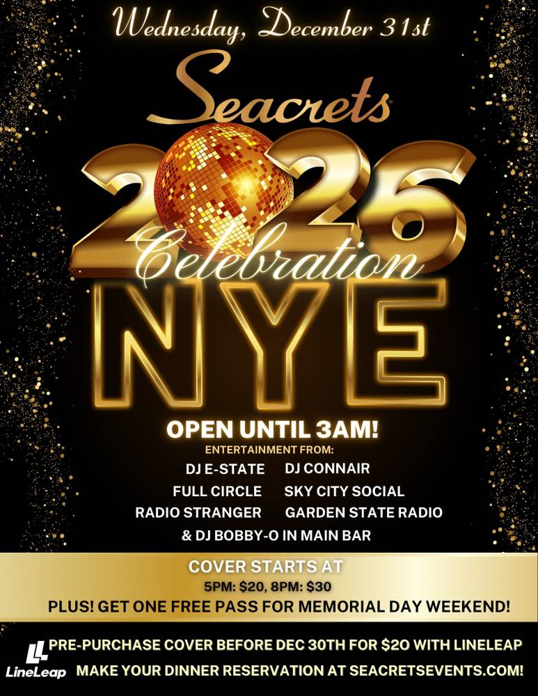 Kick off 2026 at Seacrets! We’re open at 11AM on NYE with a huge live entertainment lineup, celebrating all night ’til 3AM, and reopening New Year’s Day at 11AM with food specials and more live music!