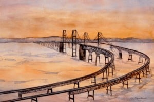 Watercolor painting of the Bay Bridge by Patty Mowell. Courtesy of the Art League of Ocean City.