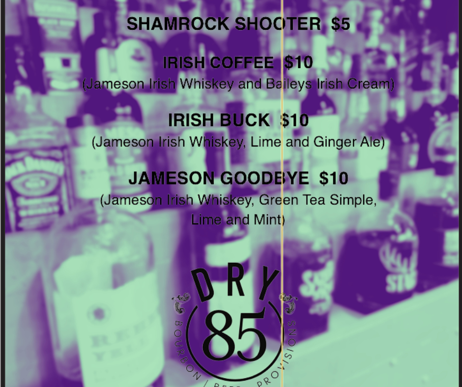 Dry 85 on 48th Street will open for the St Patricks Day Parade with plenty of Irish themed drink specials!