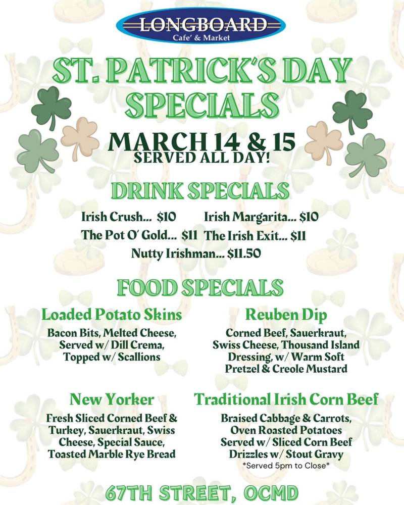 St. Patrick’s Day specials at Longboard Cafe are too good to miss. Check out these delicious food and drink features, and make your reservation now!