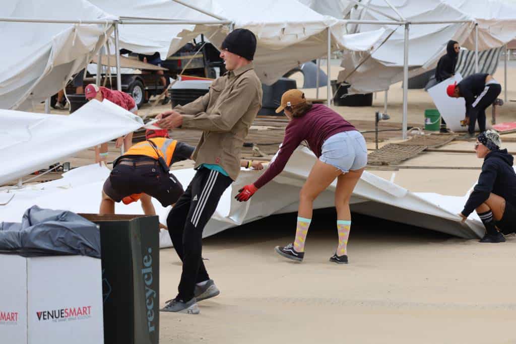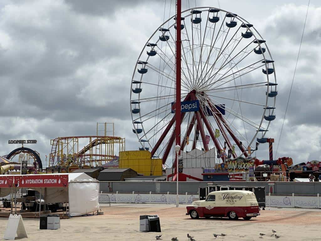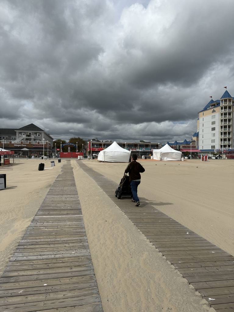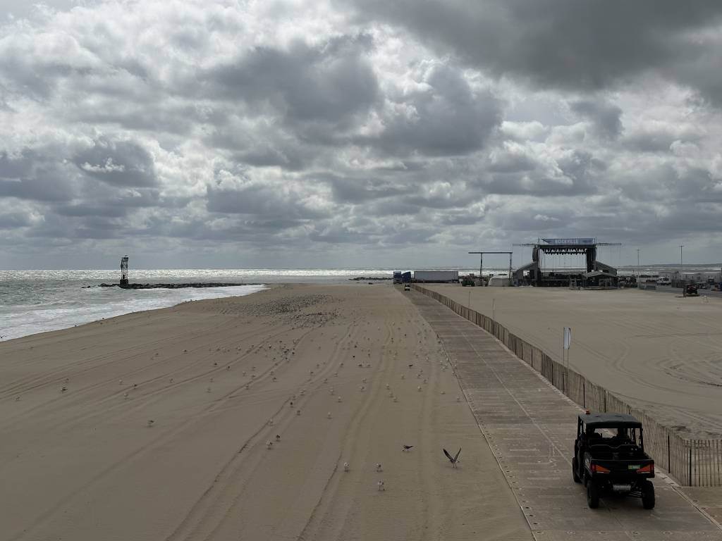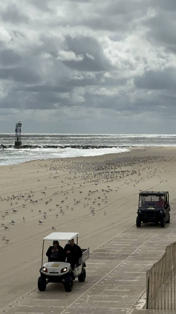 Everybody is working hard for Ocean CityWaves crash under the pier foretelling bigger and stronger waves and windAn angry ocean behind these two workers breaking down the festivalWork in progress under foreboding skies.With the wind, the little tents look like marshmallows.Wind is evident.Traffic jamWBOC interviews people on the BoardwalkThe Yuengling vehicle sits on the duradeck in the sand beneath the Jolly Roger ferris wheel.The wind makes the work more difficult.The wind has blown the sand over the duradeck, but that doesn’t impede progress.The stage nearer the inlet along with its tent villageThe duradeck comes in handy for staff.The duradeck becomes a highwayThe clouds loom as the festival is broken down.The bars will soon be down.Teamwork works.Public Works looks on.Packing it up and taking it off the beach.Lots of people document the break-downLooking forlorn with wind blown tentsIt takes teamwork to accomplish so much!I wonder where these crabs are going to go?Guest Services sign comes downEven the birds are curious.Ocean City as Ian swirls down south,Dramatic skies.Discussing the options.Despite the sad news, the Jolly Roger ferris wheel looks beautiful against the sky.Crates waiting for their content.Caution tape no longer keeps people out – it just blows in the wind.Birds resting and workers moving.And these aren’t even the high winds.And the stage stands alone.And the bar sign comes down.Always beautiful – despite the clouds.4 down – how many more to go