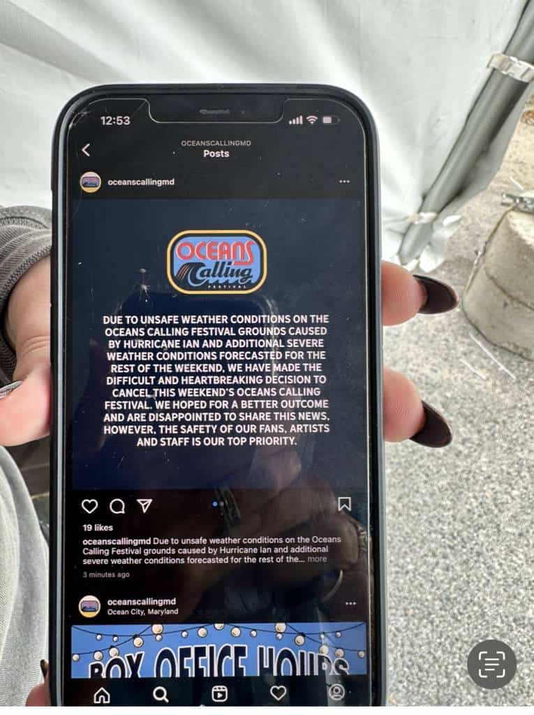 It’s what we were all hoping wouldn’t happen, but the threat from Ian, as he marches north along the coast, has caused the Oceans Calling festival organizers to cancel the entire event this weekend. They started piling sand a couple weeks ago and the planning has been going on for months ahead of that. We heard they had tickets sold to buyers in all 50 states. Hotels are booked. Businesses here in Ocean City were ready to welcome the predicted 50,000+ visitors.