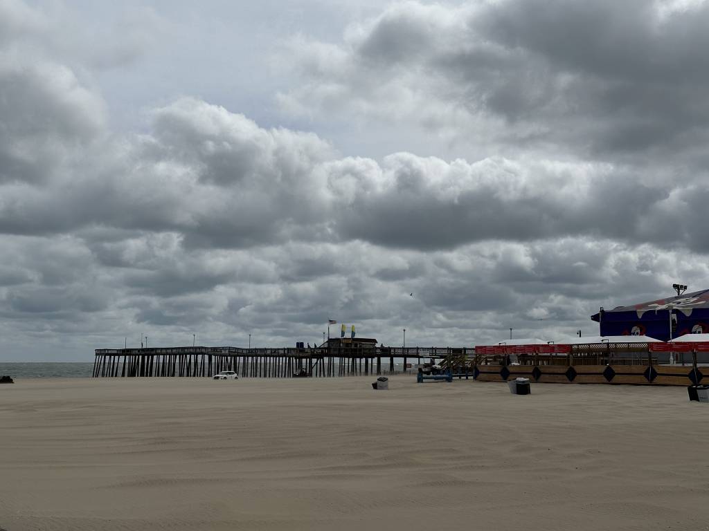 Everybody is working hard for Ocean CityWaves crash under the pier foretelling bigger and stronger waves and windThe disappointment shows