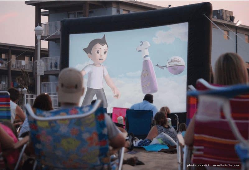 During the summer, catch family-friendly movies on the big screen – no tickets required! -