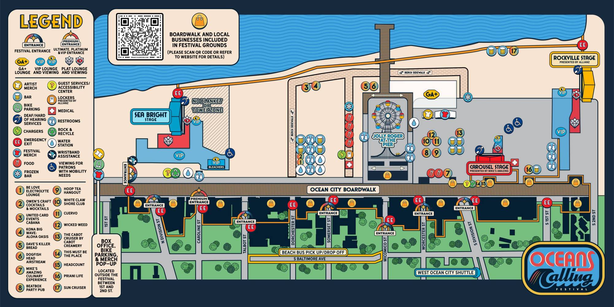 access@oceanscallingfestival.com. Please enter through the accessible lane at either entrance.