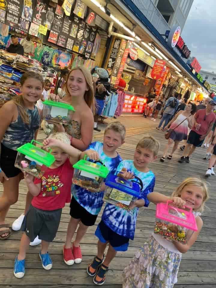 Clara Smith – Happy kids with their prize hermit crabs. We promised the grandkids a reward if they tried their best to be good all week.