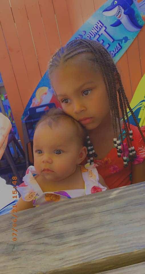 Jeanetta Lynn – We were at hammerheads waiting on our food & I captured this beautiful picture of my 2 girls oldest one 5yr old & youngest 3 months