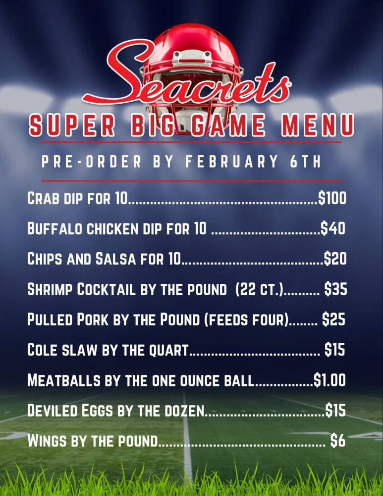 Hosting your own Super Bowl party? Then order your Super Bowl platters from Seacrets! Perfect for watch parties, last-minute hosts, or anyone who doesn’t want to cook! LAST day to order is February 6th.