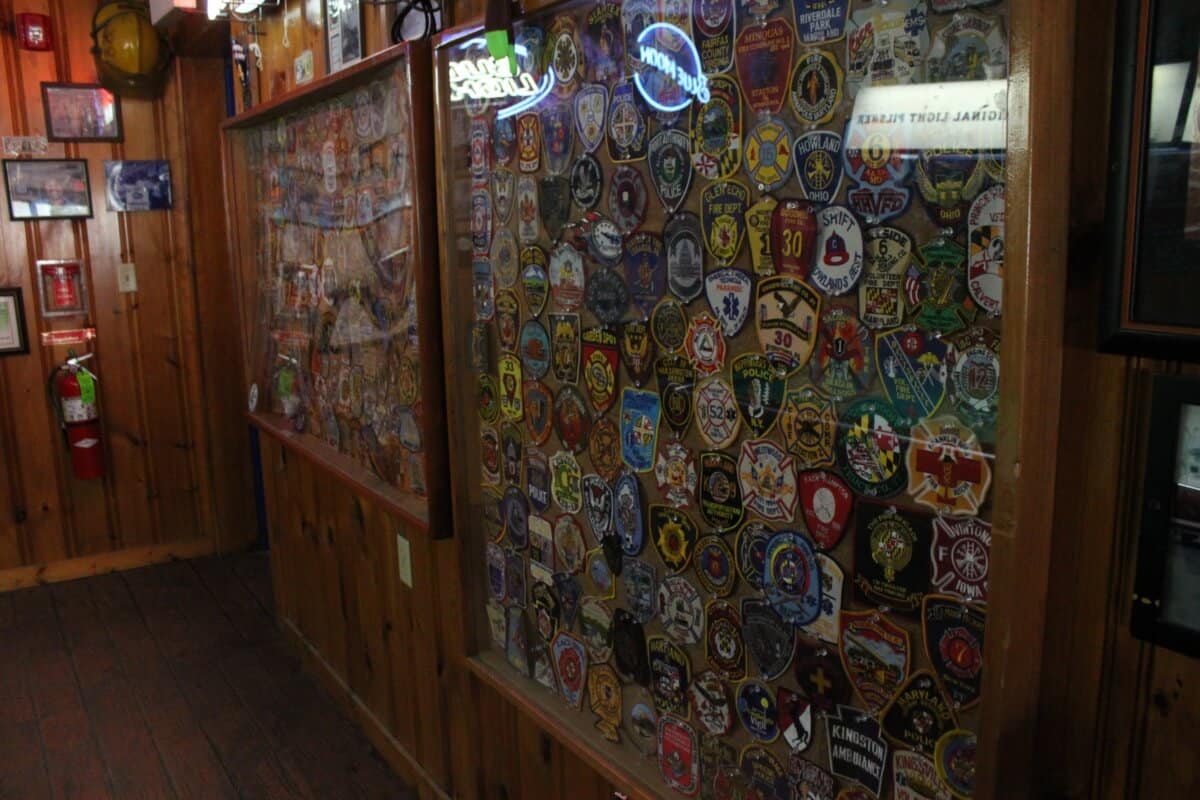 Another reigning tradition of The Cork Bar is the firefighter memorabilia that decorates the walls. That tradition started when Wilkins’ friend, a Baltimore City firefighter, brought in a friend’s helmet to hang on the wall as a joke. Like the dollar bills on the ceiling, hanging old helmets on the walls quickly grew popular.
